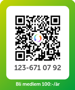 - Swisha sedan den årliga medlemsavgiften 100:- till föreningens Swishnummer (se QR- kod/nummer nedan).